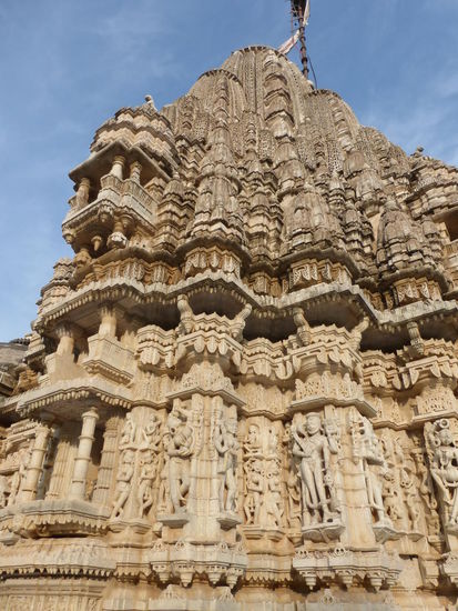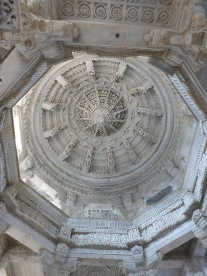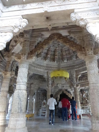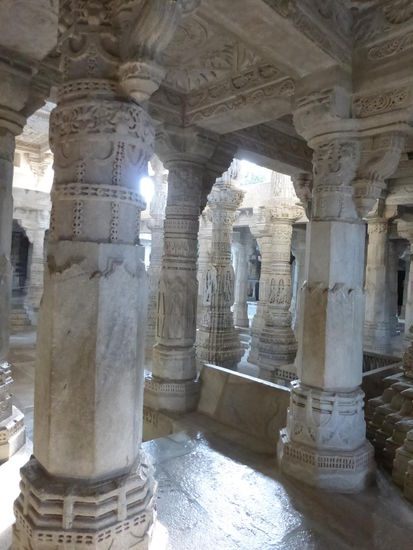 Nach 2 Tagen in Jodhpur geht es für mich weiter nach Ranakpur um mir den wohl schönsten Jain Tempel ganz Indiens an zu schauen. Der Tempel wurde Ende des 15. Jh. nach 60 - jähriger Bauzeit unter dem regierenden Rana Kumbha fertig gestellt dessen Reich mit seiner Hauptstadt Chittorgarh damals auf den Höhepunkt seiner Macht stand was sich nicht zuletzt auch in der üppigen Gestaltung des Jain Tempels aus puren Marmor wiederspiegelte . Überwältigend sind auch die unzähligen detailgenau gemeißelten Skulpuren die fast jede Ecke und jeden freien cm des Tempels einnehmen sei es mit Götterfiguren, Tieren oder  Blumenmotiven.