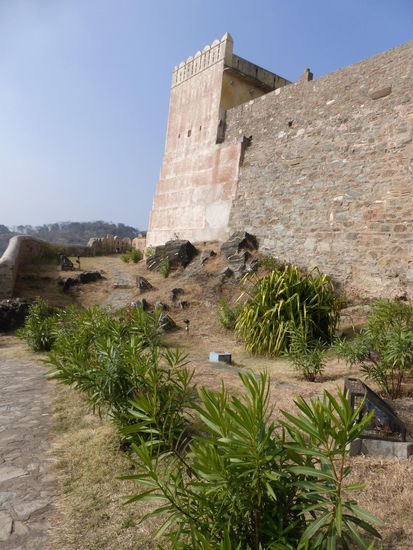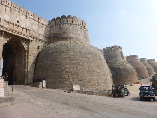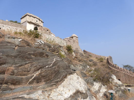 Von Ranakpur geht die Fahrt weiter durch Rajasthan und wie sollte es anders sein heute steht wieder einmal eine weitere Festung auf dem Programm. Ich besuche Kumbhalgarh die zweitgrößte Festung Rajasthans. Erbaut 1458 unter Rana Kumbha der auch für den Bau des Jain Tempels in Ranakpur und für das wieder aufleben der immer wieder belagerten und zerstörten damaligen Hauptstadt des Fürstentums in Chittorgarh verantwortlich war. Die mächtige bis zu 8 m dicke Mauer erstreckt sich über viele km in ca. 1000 m Höhe quer durch das Aravalligebirge und umschließt den Fürstenpalast , zahlreiche Tempel und andere Gebäude. Mit der Pracht des Amber Forts in Jaipur oder des Meherangarh Forts in Jodhpur kann Kumbhalgarh nicht mithalten aber der Gesamteindruck dieser mächtigen Anlage und der Blick oben vom Palast aus auf die Umgebung ist spektakulär. Angenehm fand ich auch wieder einmal das außer mir nur noch 8 weitere Besucher unterwegs waren. Sie kamen aus Belgien , Frankreich und Spanien. Seit 2013 gehört die Festung Kumbhalgarh zum UNESCO WELTKULTURERBE !!