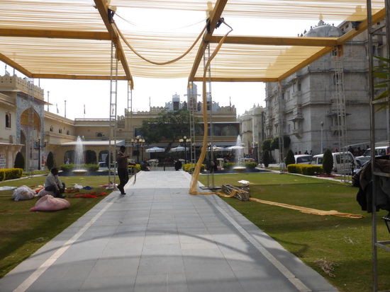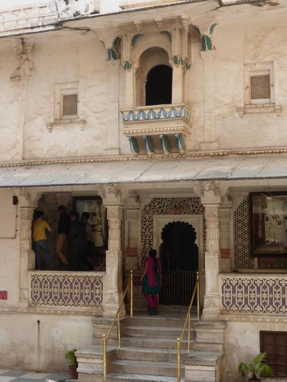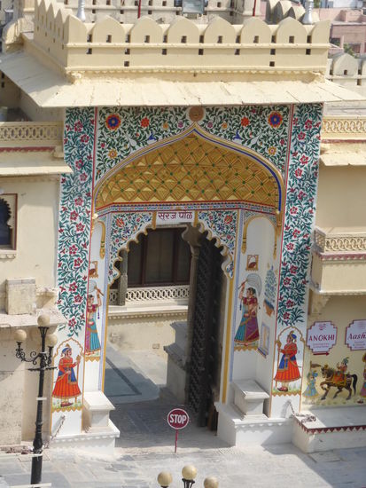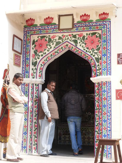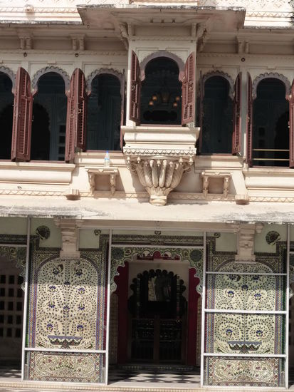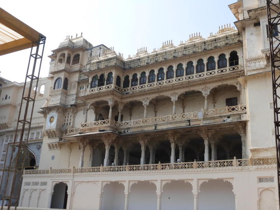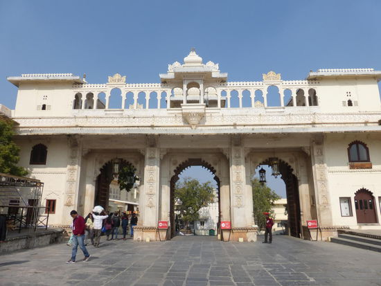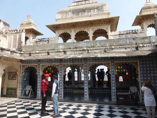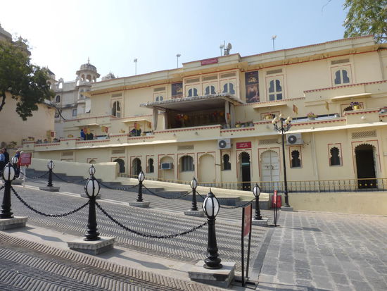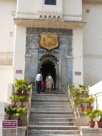 Nach dem ich gestern schon etwas durch die Altstadt gewandert bin besuchte ich heute den City Palast von Udaipur. Mit dem Bau wurde 1559 begonnen und immer wieder erweitert. Die Anlage die malerisch direkt am Pichola See liegt besteht aus mehreren Hauptpalästen unterschiedlicher Stilepochen und ist bis heute die größte ihrer Art in Rajasthan. Während ein Teil des Palastes immer noch den Maharajas als Residenz dient wurde der Südflügel zu einem Luxushotel umgebaut . Der einzig zugängliche Bereich im Palast ist das " City Palast Museum " .