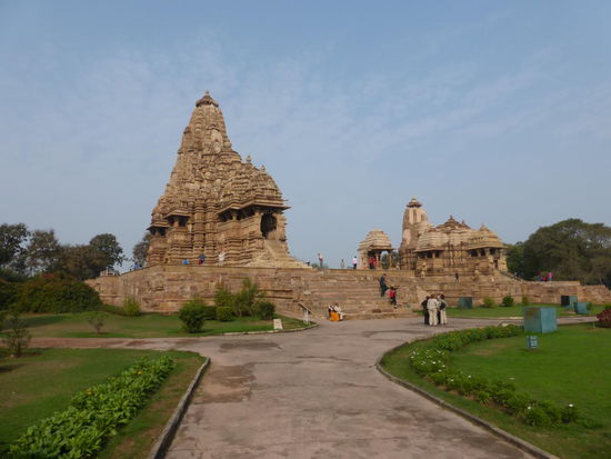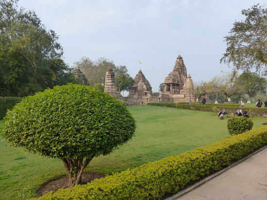 Erster Blick auf die Tempel der Westgruppe in Khajuraho