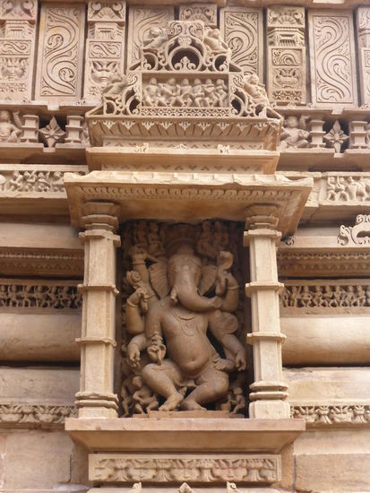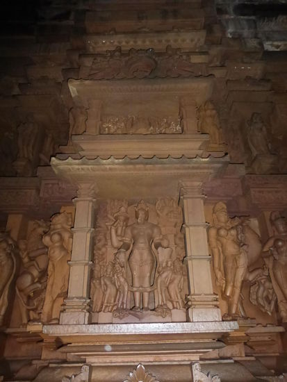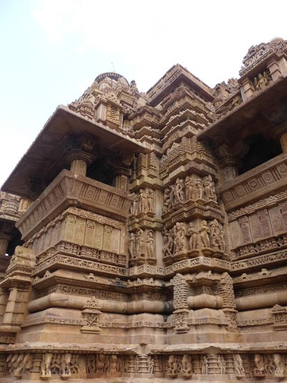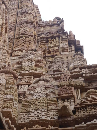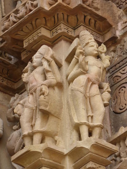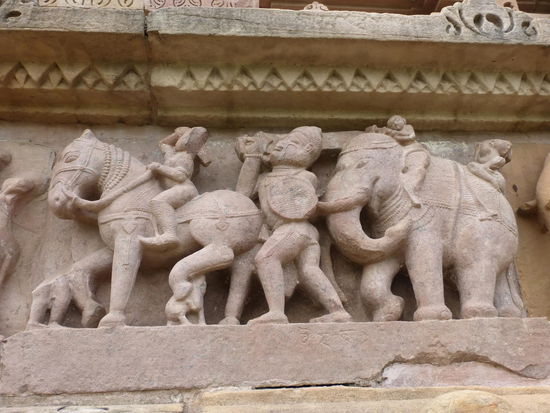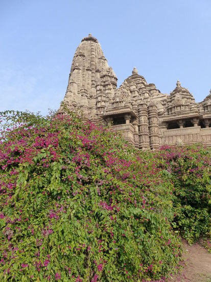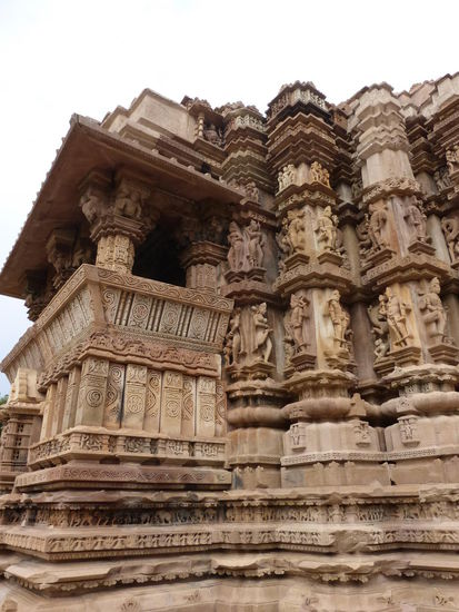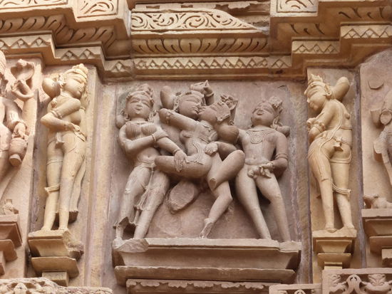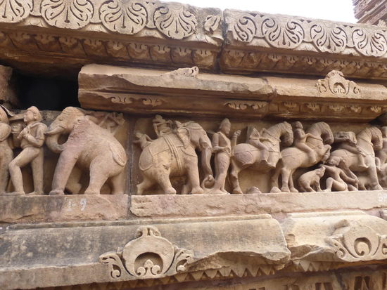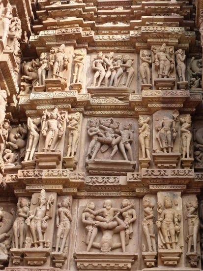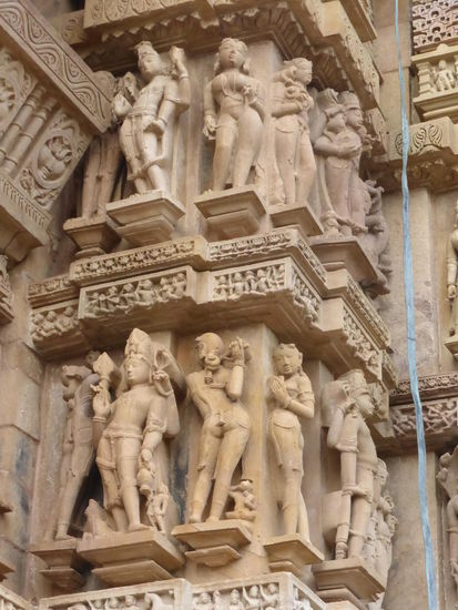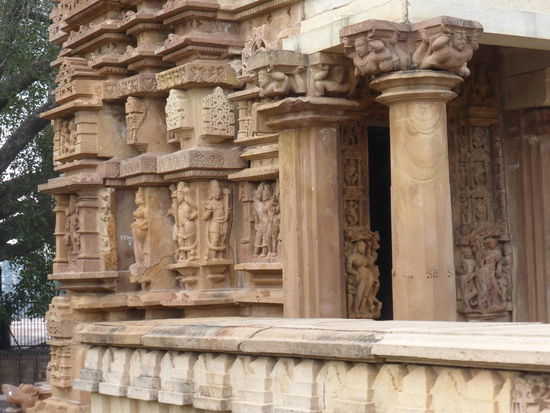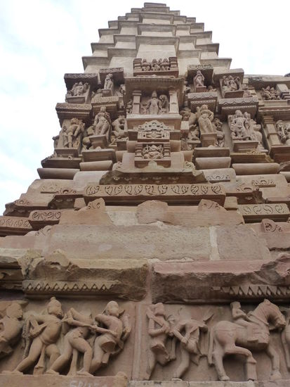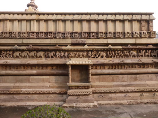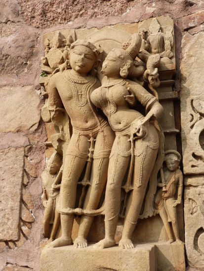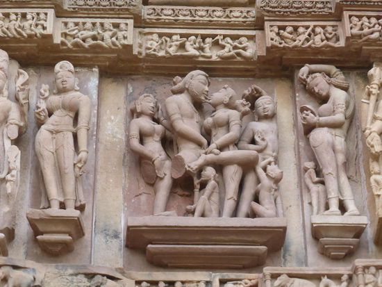 Nachdem ich gestern schon einen kleinen Einblick bekommen habe von den Jain Tempeln der Ostgruppe in Khajuraho geht es heute zur Westgruppe mit Ihren Hindu Tempeln. Khajuraho war ab den 7. Jh. Hauptstadt des Chandela Reiches von der aus die Familie der Rajputen große Teile von Zentralindien beherrschte. Während Ihrer Blütezeit zwischen 950 und 1100 erbauten die Chandelas über 80 Tempel von denen heute noch etwa 20 erhalten sind. Sie gelten auch heute noch als die bedeutensten Beispiele der indo - arischen Architektur in Indien. Einmalig ist vor allem auch der Skulpturenreichtum mit Ihren Tänzern , Bauern , Könige , Götter , Krieger , Elefanten und vielen anderen Motiven. Der Hauptgrund für die lange Anreise von Zehntausenden Besuchern jährlich dürften jedoch die vielen erotischen Szenen sein für die Khajuraho auch über die Grenzen Indiens hinaus bekannt ist. Erotische Darstellungen sind auch im Hinduismus nichts ungewöhnliches doch nirgendwo ist es so phanasievoll und Detailgetreu zu sehen wie hier. Wenn man sieht wie prüde und rückständig ein großer Teil der indischen Bevölkerung heute ist wo Frauen und Mädchen vergewaltigt oder auch sonst wie schlecht behandelt werden und als nicht besonders " wertvoll " gelten wundert man sich wie offen und tolerant man in früherer Zeit auch im Hinduismus mit Sexualität umgegangen ist. Seit 1986 gehören die Tempel in Khajuraho zum UNESCO  WELTKULTURERBE .