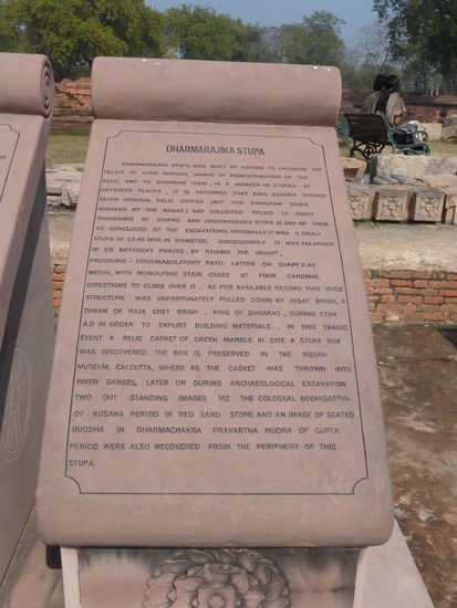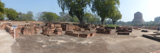 Wie schon im letzten Kapitel erwähnt ist der kleine Ort Sarnath mit der Jahrtausende alten Geschichte von Varanasi eng verbunden. Er gehört zu den 4 wichtigsten Orten des Buddhismus. Gautama Siddharta ( später Buddha ) der in Lumbini ( Nepal ) geboren wurde und im indischen Bodhgaya unter dem Bodhi Baum seine Erleuchtung fand hielt hier in Sarnath vor mehr als 2500 Jahren seine erste öffentliche Predigt. Die Ihm hier 5 zuhörenden Gefolgsleute bildeten die Keimzelle seiner Lehre. König Ashoka der den Buddhismus zur Staatsreligion erhob ließ hier mehrere Klöster und Stupas errichten. Mitte des 1. Jh. wurde der Buddhismus jedoch wieder durch den Hinduismus Zurückgedrängt. Die Anlage geriet in Vergessenheit und wurde unter der muslimischen Herrschaft fast völlig zerstört. Erst 7 Jahrhunderte später wurde die Anlage von den Engländern wieder endeckt und nach und nach frei gelegt. Heute ist Sarnath wieder das Ziel von Tausenden buddhistischer Pilger überwiegend aus dem asiatischen Raum .