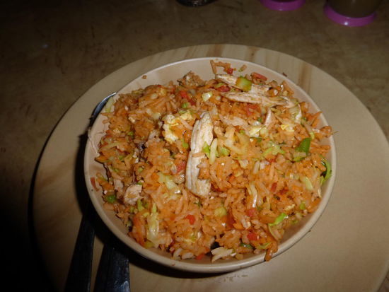2 Chicken Burger  + 1 Teller Gemüsereis = 310 Rupie = 3,70 Euro