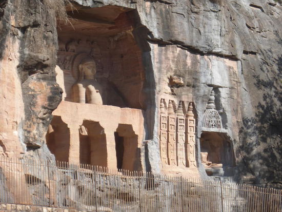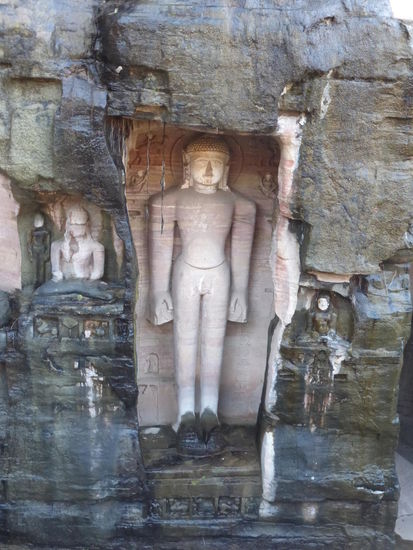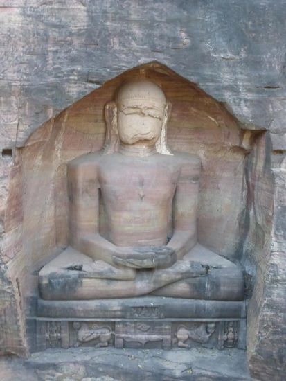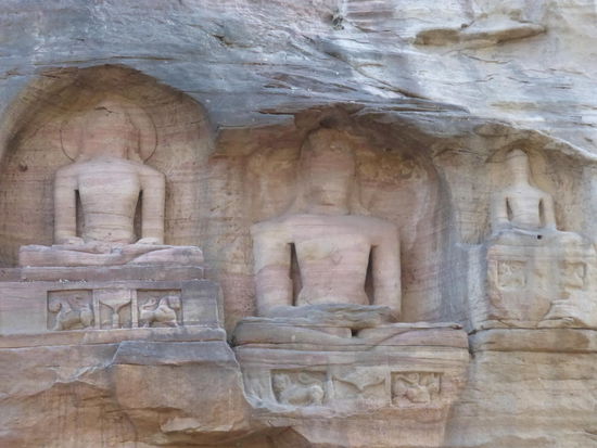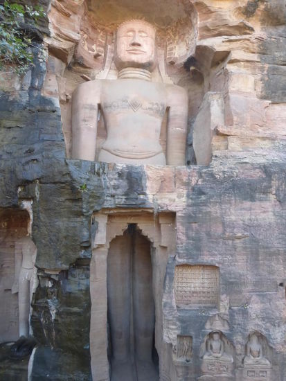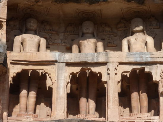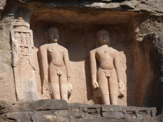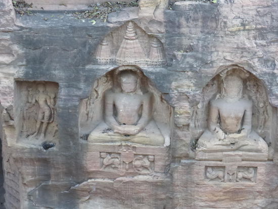 Auf den Weg hinauf und hinunter zum / vom Fort Gwalior kommt man an diesen eindrucksvollen Jain Skulpuren aus dem 15 . Jh. vorbei.