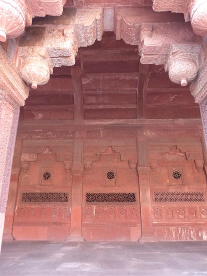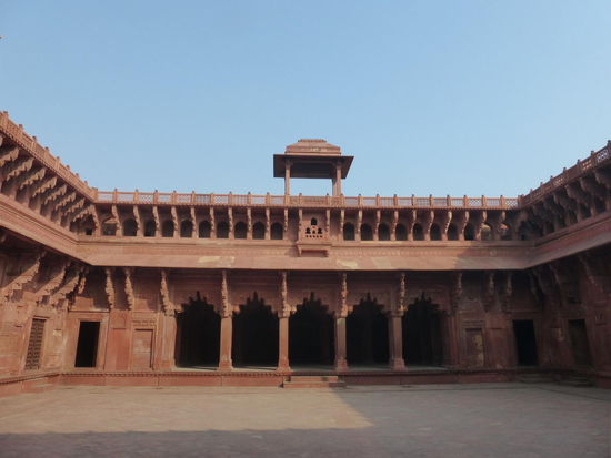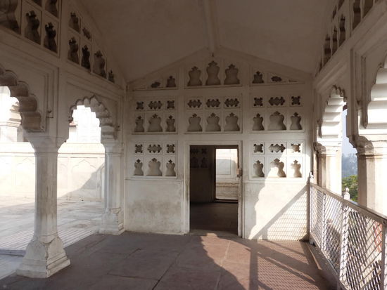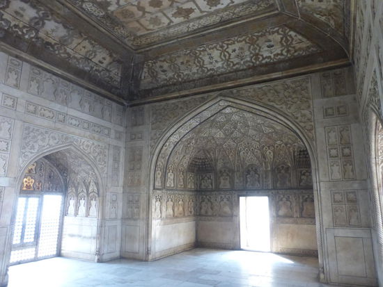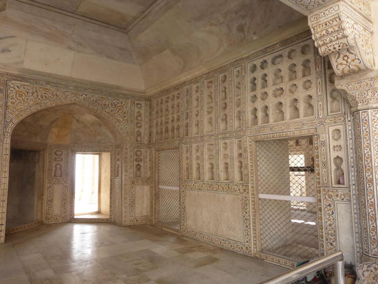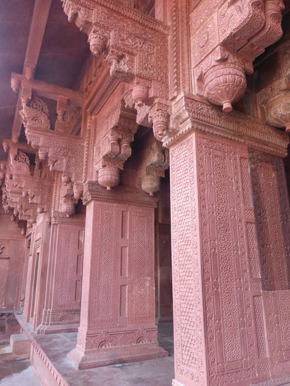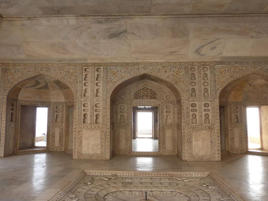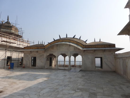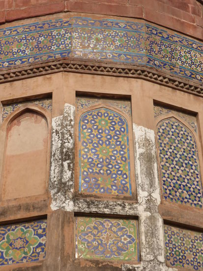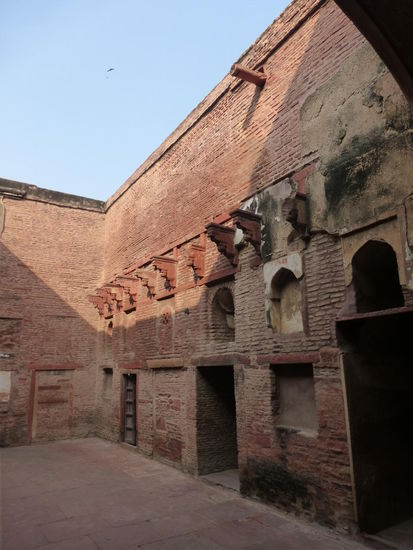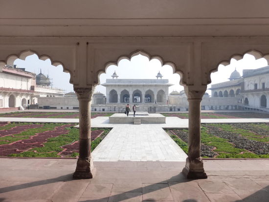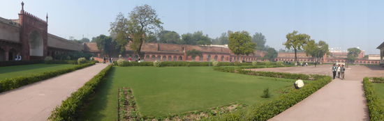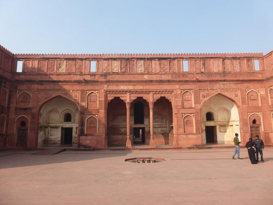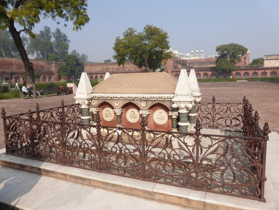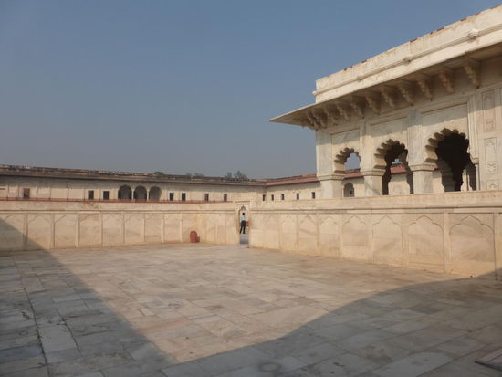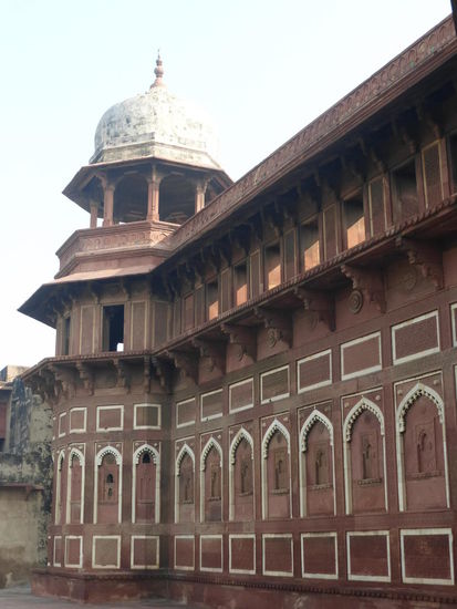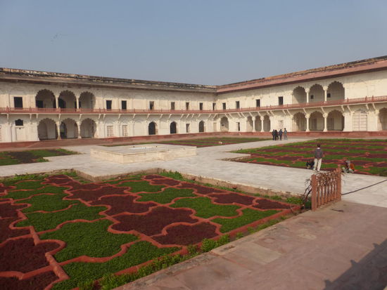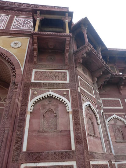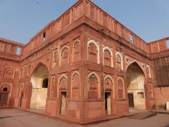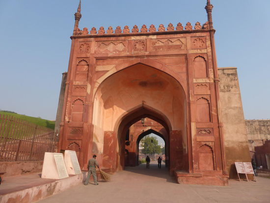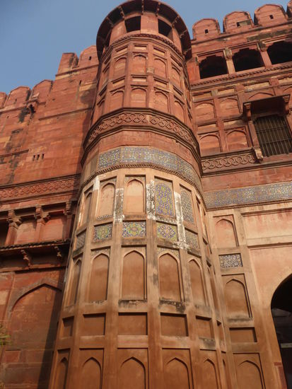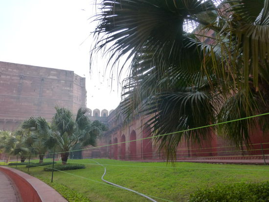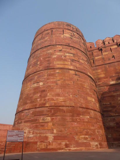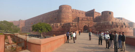 Nach der Rückfahrt von Sikandra machte ich meinen nächsten Stop am Red Fort in Agra mit seinen 20 m hohen und über 12 m dicken Doppelmauern. Mit dem Bau wurde unter Akbar dem Großen 1565 begonnen nach dem dieser die Hauptstadt von Delhi nach Agra verlegen ließ . In den folgenden Jahrzehnten wurde die Festung immer weiter erweitert u.a. unter Shah Jahan in der ersten Hälfte des 17. Jh. Nach dem 1648 die Hauptstadt wieder zurück nach Delhi verlegt wurde verlor auch das Red Fort in Agra an Bedeutung. Die meisten Gebäude der einst königlichen Stadt im Fort sind heute zerstört und ähnlich wie im Red Fort in Delhi ist der Verfall der vorhandenen Bauwerke an einigen Stellen nicht zu übersehen. Imposant ist diese Festung aber auch heute noch allemal . Seit 1983 gehört das Red Fort in Agra zum UNESCO WELTKULTURERBE .