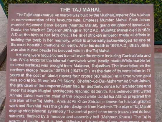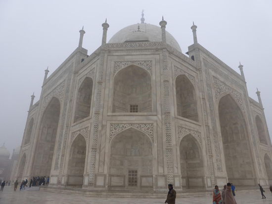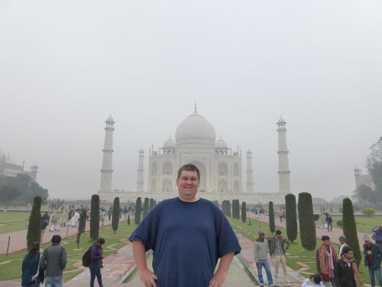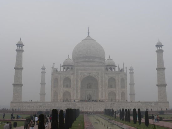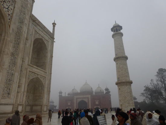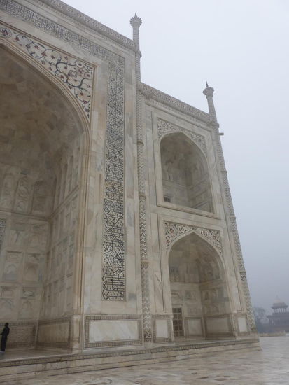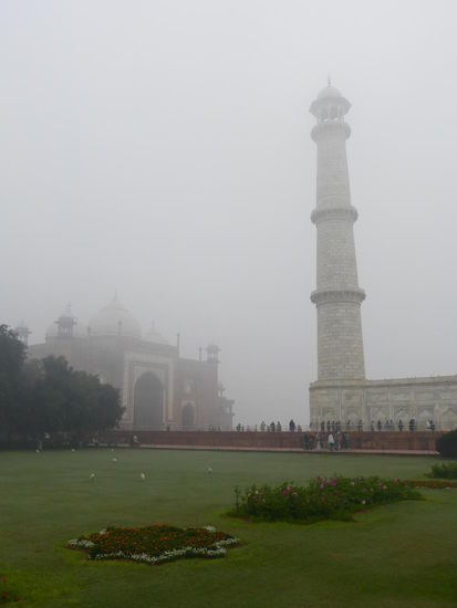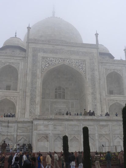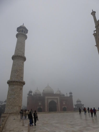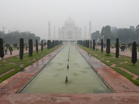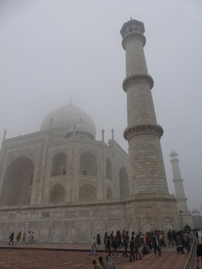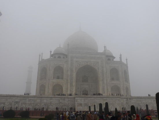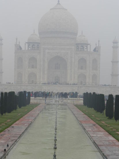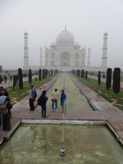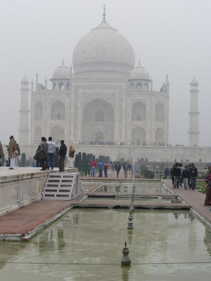 Heute ist mein 3. Tag in Agra und auch der letzte bevor es morgen wieder zurück geht nach Delhi und von dort aus weiter in Richtung Heimat. Und ebenfalls Heute werde ich das Nationalsymbol Indiens schlechthin besuchen was für viele Menschen als eines der schönsten Bauwerke der Welt gilt. Es ist das Mausoleum was der Großmogul Shah Jahan für seine 1631 verstorbene Frau und große Liebe Mutmaz Mahal erbauen ließ natürlich das Taj Mahal !! Es gilt bis heute als eine Perle der Mogul - Architektur und ist die meist besuchte Sehenswürdigkeit Indiens. Schon vor den Toren stehen Tausende Menschen hauptsächlich Inder aber auch einige Ausländer u.a. auch aus Deutschland, Österreich und der Schweiz an den Kassen an um ein Tiket zu bekommen . Die Inder zahlten natürlich wie so oft nur ein Bruchteil von dem was wir Ausländer zahlen durften. Ich hatte leider etwas Pech mit dem Wetter denn es hing dichter Nebel über dem Bauwerk. Meine Videokamera mußte ich abgeben aber Fotos durfte ich machen. Innerhalb des Geländes wurde ich dann immer mehr begehrtes Foto - Objekt warum auch immer für viele Indische Familien oder auch Firmen die Ihre Mitarbeiter zum Betriebsausflug eingeladen hatten. So mußte ich mehrmals deutlich darauf hinweisen das ich nicht das Taj Mahal bin sondern dieses weiter vorne im Nebel versteckt steht was natürlich für einiges Gelächter sorgte. Ob das Taj Mahal letztendlich wirklich das schönste und beeindruckenste Bauwerk in Indien ist muß sicher jeder für sich selber entscheiden aber für mich persönlich ist es ein Highlight unter vielen in diesen Land . Meine persönliche Top Ten Liste am Ende dieses Kapitels. Seit 1983 gehört das Taj Mahal zum UNESCO WELTKULTURERBE .