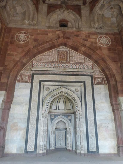 Der im roten Sandstein erbaute Sher Mandal spätere Bibliothek wurde Großmogul Humayun im Januar 1556 zum Verhängnis als er hier schwer stürtze und an seinen Verletzungen starb.