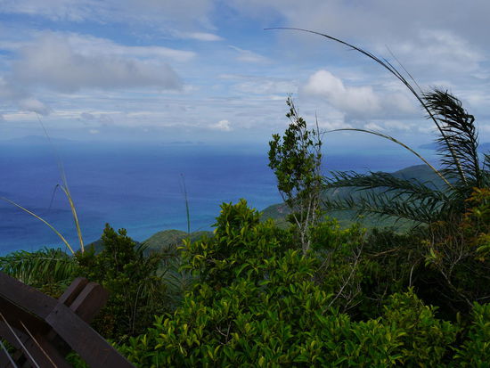 Schon stehen wir vor dem Ticket Counter der Doppelmayr Bergbahn und lösen hoch und runter für 35 RM pro Person. Das Kabinenbähnchen sieht gut gewartet und vertrauenswürdig aus. Die Mitreisenden in unserer Gondel fangen auch sogleich ein Gespräch über Skiurlaub in den Alpen an. Komisch wozu eine österreichische Bergbahn in den Tropen einen so inspiriert. Wir beteiligten uns nicht an der Planung der nächsten Winterferien. Wir genossen die Aussicht. Die Bahn fährt auf den Zweit höchsten Gipfel der Insel und ist nach 700 Höhenmetern auch schon am Ziel. Aber der Berg ist recht felsig und das Land drum herum ziemlich platt. Und Doppelmayr hat die Sache echt spektakulär inszeniert. Ja das können sie, die Österreicher. Oben angekommen empfängt einen Disney-Like die Mickey Mouse zum Foto. Nachdem ich mich irgendwie an der Nummer vorbei gemogelt habe, kann ich die Aussichtsplattform betreten. Es bläst ein kräftiger Wind und man staune, es ist frisch hier oben, in schwindelnden Höhen. Die Aussicht ist leider aufgrund der Wetterlage eher bescheiden. Trotzdem sind wir entzückt und erfreuen uns, an unseren da sein. Super lustig sind die anderen Bergtouristen. Asiaten haben ja bekanntlicher Weise einen extremen Hang zu Selfis in ausgefeilter Choreographie. Der absolute Hit ist in diesem Jahr eine Teleskopstange, an der man vorne sein Handy befestigt und so problemlos, ohne sich den Arm aus zu kugeln, wild drauflos knipsen kann.