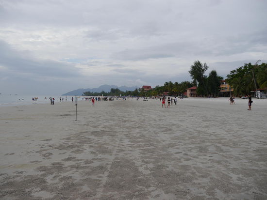Wir schlenderten den Strand rauf, das Wasser scharf im Auge, um die Quallen-Lage zu peilen. Nichts zu sehen. Rein gar nichts zu sehen. Das sah verheißungsvoll aus. Plötzlich sprang ein uniformiertes Männchen aus dem nichts vor unsere Füße und erklärte, dass ein weitergehen ab jetzt untersagt ist. Hää??? Vor uns Kilometerweiter Menschenleerer Strand und wir durften nicht weiter? Warum??? Vor uns lag das Four Season Resort und dahinter das Tanjung Rhu Resort. Die zwei teuersten Luxusschuppen der Insel. Na und denen gehörte natürlich auch der ganze Strand. Na klar, wie blöd von und zu glauben, der schönste Strand der Insel ist für ALLE da.