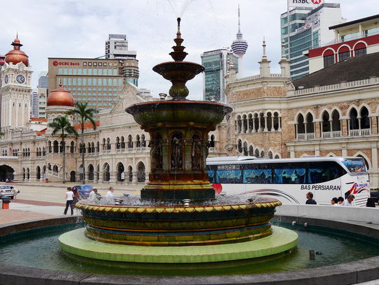 Weiter ging es und der Weg hatte noch einige Überraschungen für uns parat. Wir kamen an tollen Gebäuden aus der maurischen Zeit, der Tudor Zeit und noch weiteren Zeiten vorbei. Allerdings immer im starken Kontrast mit in den Himmel ragenden Wolkenkratzern der Neuzeit. Auffällig, sind auch die Vielzahl von Mülleimern, die das Straßenbild bereichern und noch erstaunlicher ist der rege Gebrauch der von ihnen gemacht wird. Alles in allem ist KL eine sehr saubere und aufgeräumte Stadt. Sie glänzt zwar nicht mit Tempeln an jedem Eckchen, wie viele andere asiatische Städte, aber sie hat Charme. Das liegt vielleicht nicht zuletzt an ihren Bewohnern, die allesamt durch sehr viel Freundlichkeit, Hilfsbereitschaft und wohltuender Unaufdringlichkeit bestechen. So kommt es zuweilen vor, dass jemand wildfremdes dich in Malaysia herzlich Willkommen heißt, dir ein hinreißendes Lächeln schenkt und seiner Wege geht. Oder du stehst mal wieder mit dem Touristadtplan unschlüssig in der Gegend herum und schon kommt ein hilfsbereiter Mensch auf dich zu und erklärt dir einfach nur so, wie du wohin kommst. Wir streifen jetzt schon den dritten Tag durch die Metropole und noch niemand!!! hat uns ein Taxi, ein Hotel, eine Tour oder ein Besuch in seinem Restaurant aufschwatzen wollen.