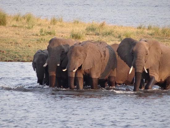 Einen Nachmittag haben wir im Chobe Nationalpark verbracht. Der Chobe NP ist der zweitgrößte NP in Botswana. Wir fuhren mit einem Boot durch einen kleinen Teil des NP und konnten dort ganze Herden von Elefanten, Wasserbüffel und Hippos beobachten. Zurzeit beläuft sich die Population der Elefanten dort auf ca 120000: