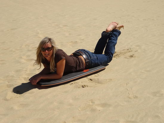 Das Cap Reinga ist von Kaitaia noch ca. 120 km entfernt. Mit unserem Camper durften wir aus versicherungstechnischen Gründen nicht den 90 Mile Beach befahren. Da die Gezeiten das Fahren am Strand erschweren, haben wir uns auf das Risiko in der Flut abzusaufen nicht eingelassen und so buchten wir eine Tour. Der Preis war nicht wesentlich höher, als der Sprit, den wir verbraucht hätten, um an das Cap zu gelangen. Mittagessen und Sandsurfen war auch noch inklusive.
