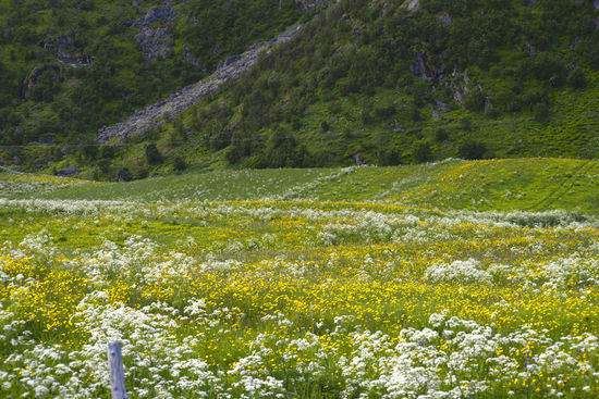 Frühlingsblumen säumen den Weg und ein wunderbarer Ausblick aus dem Womo lässt uns den Tag gut beginnen. Nach einem Hundespaziergang gibt es Frühstück und dann geht es weiter Richtung Fredvang. diesen Platz hatten wir von den Rettern beim Svartiesen Gletscher als wir ankommen, sagen wir allein dafür war es gut diese Mördertour gemacht zu haben...