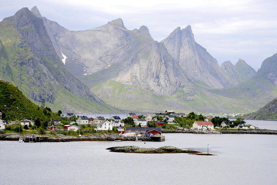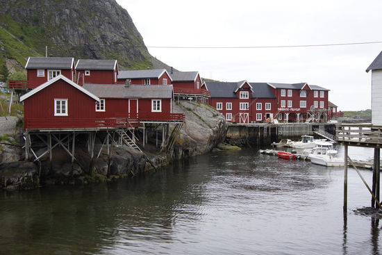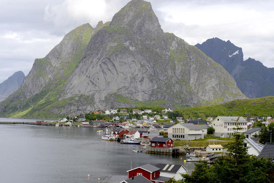 Am Morgen wachen wir auf und der Himmel ist bewölkt, wir entschließen beim Frühstück, was hier etwas später ausfällt, dass wir nach Reine und den Ort mit den kürzesten Namen °A° fahren. Eigentlich wollten wir uns den Ort Reine für schönes Wetter aufheben, da er wunderschön sein muss. Ich hatte schon viele Bilder von Reine gesehen, aber da wir ja nicht wissen, wie das Wetter weitergeht, es ist durchwachsen gemeldet, nehmen wir das halt so in Kauf, wie es ist und starten los.