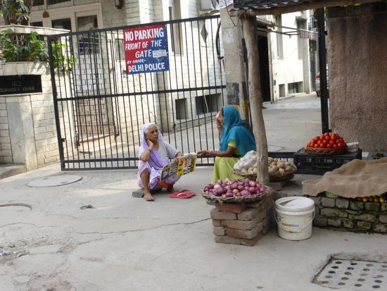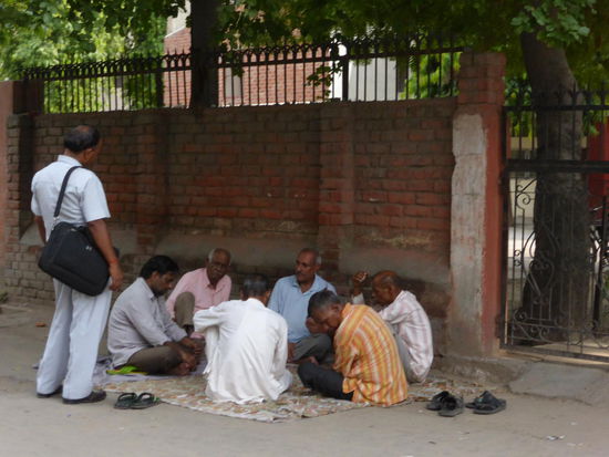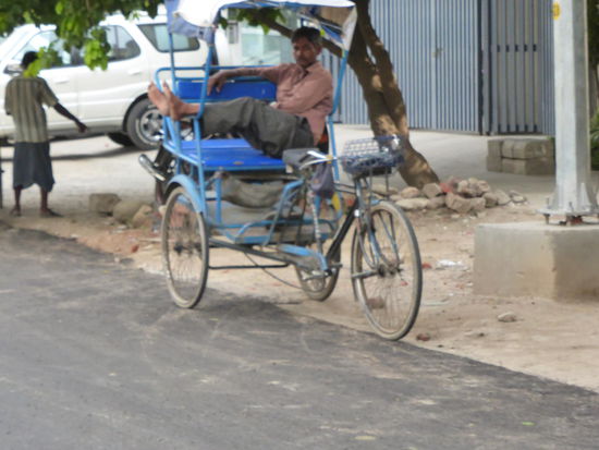 Dieses Mal riecht es an vielen Stellen latent nach Müll, was sicherlich daran liegt, dass die durch den Monsun bedingte Schwüle alle Gerüche nach unten drückt. Überall wo achtlos hingeworfene Essensreste liegen, tummeln sich die Fliegen, sogar im sauberen Al Bake gehen sie einem gehörig auf die Nerven. Es wird wieder fleißig gebettelt, auf der Straße gepennt, gehupt was das Zeug hält, man sieht streunende Hunde und Kühe mitten im Straßenverkehr, Fahrer der Fahrradrikschas, die sich abschuften müssen, um ihre zum Teil sehr schweren Lasten vorwärts zu bekommen und das nur dadurch schaffen, dass sie sich mit ihrem ganzen Gewicht stehend in die Pedale stemmen. Familien auf Mopeds, deren Babys inmitten des Lärms auf den großen Kreuzungen selig ruhig schlummern, farbenfrohe Saris ziehen an uns vorbei, die Erdnussröster werfen ihre heiße Ware im Zeitungspapier hoch, damit der Kunde sich nicht die Finger verbrennt. Kleine Grüppchen von Männern sitzen palavernd auf den Bürgersteigen und Obstwägelchen präsentieren ihre hübsch gestapelten Früchte - Willkommen zurück in Indien!