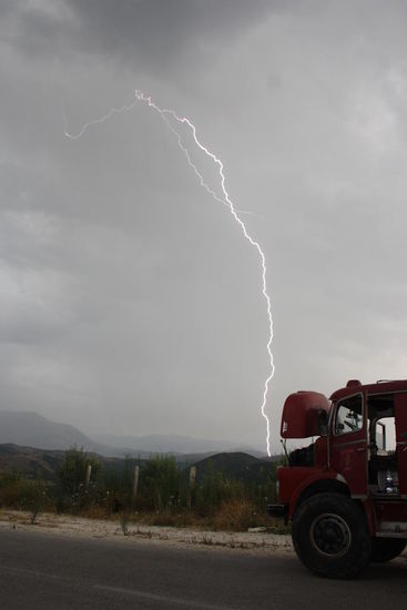 ganz so direkt fällt die strecke dann allerdings nicht aus. wir verlieren die feder vom gaszug und auch eine einstündige suche bleibt erfolglos! zum glück hält irgendwann ein netter grieche, schenkt uns ein ähnliches teil und lars kann ein provisorium bauen. und dies alles noch bevor uns das nächste unwetter erreicht...
