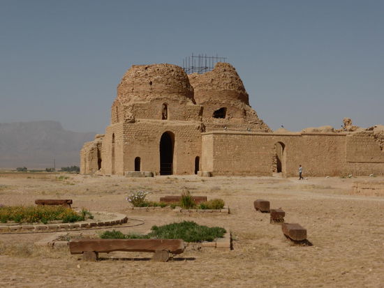Der Palast von Sarvestan, eine Lehmziegelruine einige Kilometer südlich der gleichnamigen Stadt, spielt eine bedeutende Rolle in der iranischen Kunstgeschichte und wird üblicherweise in die sassanidische Zeit ins 5. Jahrhundert datiert. Nach einer Untersuchung von Lionel Bier wurde der erhaltene Bau jedoch zwischen 750 und 950 n. Chr. errichtet