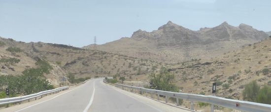 Nach einstündiger Pause geht es weiter und gegen 15.15 erreichen wir Sirjan. Dann tauchen wieder Berge auf (wir meinen die Spitzkoppe von Namibia zu erkennen) Pass 2400 m.