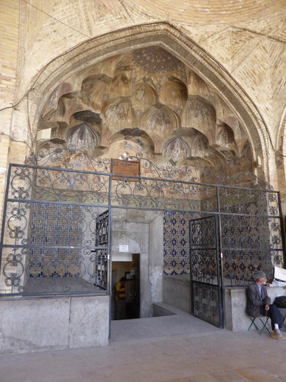 The Bazar-e Ekhtiari leads east from the square and passes the Hamam-e Vakil Chaykhaneh before becoming the Bazar-e Vakil; both are about 150 years old. After about 600m the covered bazaar ends and the 700-year-old open-air Bazar-e Mosaffari begins, though there is little evidence of such antiquity. The Jameh Mosque can be entered from this bazaar, and you can then walk through to Shohada Sq.