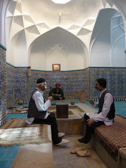 Als erstes besichtigen wir den in ein Museum umgewandelten Hammam. Wie in einem Wachsfigurenkabinett sind dort Szenen aus dem Hamam früherer Zeiten dargestellt.