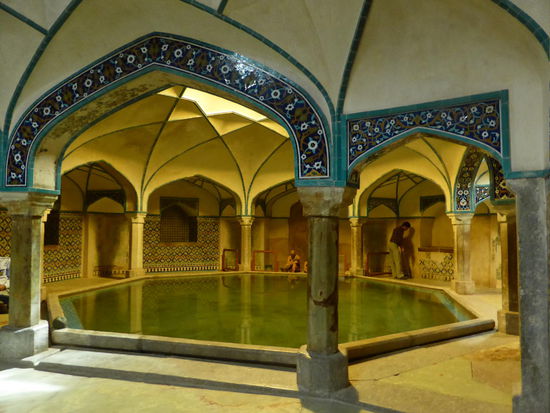 From the northeastern corner of the square, the Gold Bazaar (Bazar-e Zargaran) leads to a small square with an attractive portal leading to an old (and now closed) madraseh. Follow the steps down into the Hamam-e Ebrahim Khan, one of Iran's few traditional bathhouses where men can still be rubbed, scrubbed and beaten. The welcoming manager might show visitors around if it's not busy.
