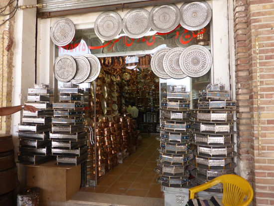 Und schließlich werfen wir - zurück am Eingang - noch einen Blick auf die Kesselflicker, bevor wir gegen 11.00 Uhr etwa 35 km Richtung 'Pakistan' nach Mahan fahren.