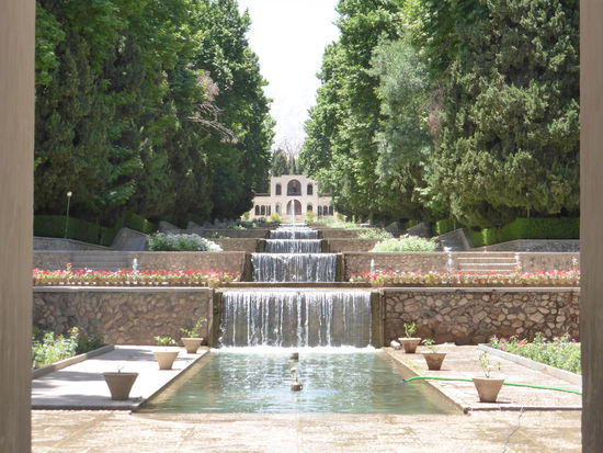 Am Ende der stufenartig angelegten Wasserkaskaden steht die ehemalig königliche Pavillonanlage, in der sich die Königsfamilie aufhielt, wenn sie Kerman besuchte.
