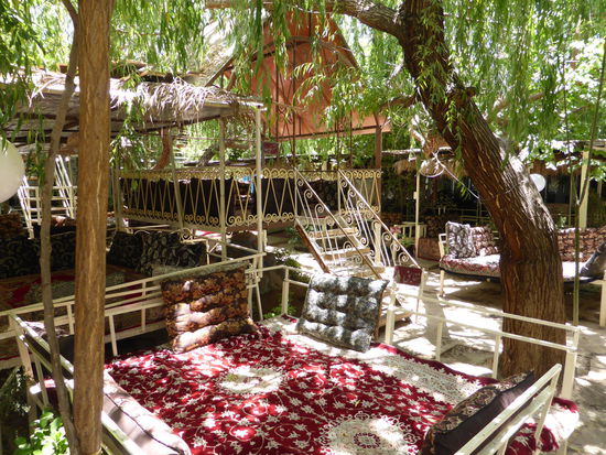 Ein herrlich grüner Fleck inmitten einer trostlosen Steppenlandschaft deutet schon den nächsten Programmpunkt an: Eram-Garten mit prächtigem Torbau und kleinem Palast, von den Bergen in langen Kaskaden wasserdurchflossen. Hier im Süden des Landes haben wir wie auch schon im Norden fast alles für uns alleine.