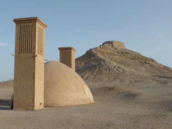 Unmittelbar vor Yazd machen noch einen kurzen Stop (wegen der tollen Abendsonne) an den sog. Türmen des Schweigens, in denen bis 1970 die Toten den Geiern im wahrsten Sinne des Wortes zum Fraß vorgelegt wurden. die Angehörigen haben derweil im Tal genächtigt.