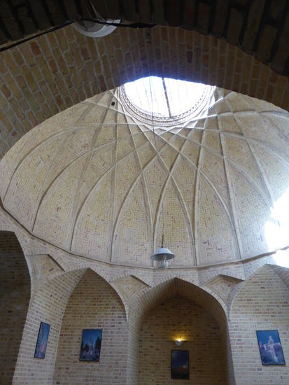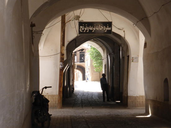 Um 9.30 Uhr treffen wir uns mit Sami an der Rezeption und besichtigen Yazd per pedes. Direkt gegenüber unseren Fahadan Traditionshotel befindet sich das Alexander-Gefängnis (Zendan-e Iskander oder Madrese Ziyai)., das eigentlich eine Schule war. Gemäß der Legende soll Alexander der Große hier aufständische achämenidische Adelige eingekerkert haben. Im Hof gibt es einen verliesartigen tiefen Raum, bei dem es sich wahrscheinlich um eine ehemalige Krypta handelt. Die Gesamtanlage von 1231 wurde als Madrese benützt, woraus sich ihr alternativer Name Madrese Ziyai ableitet.