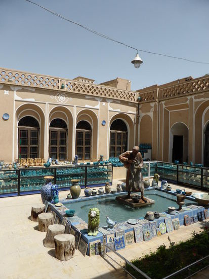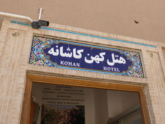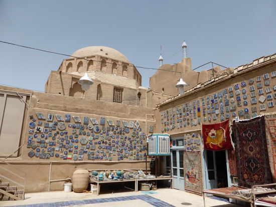 Im Kohan-Hotel dürfen wird auf das Dach steigen, um einen Rundumblick über die Stadt zu genießen. Fast alle Hotels haben einen durch Tuchüberspannung beschattbaren Innenhof.