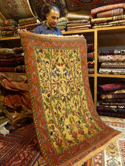 Auf dem Rückweg zum Hotel werfen wir einen Blick in eine Bäckerei, bevor wir am Hotel bei einem Tee Teppiche gezeigt bekommen. Interessant ist dabei eine spezielle Art Teppich, der Nadelarbeit ist, denn auf der Rückseite sieht man die Fäden.