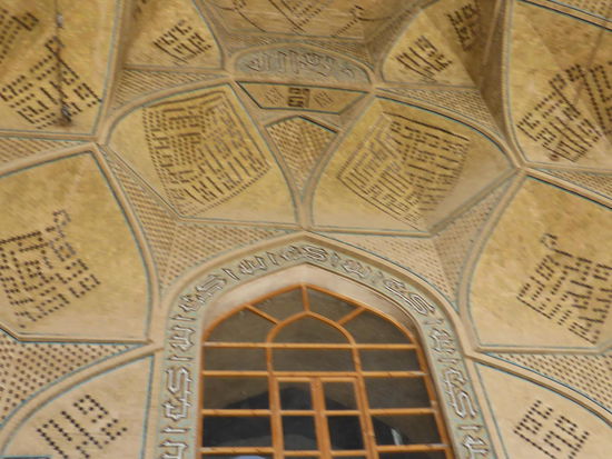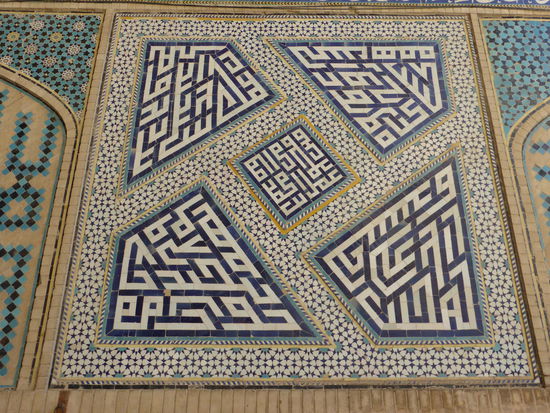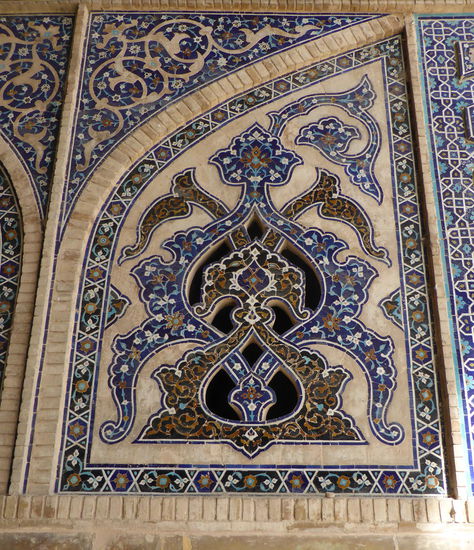 Der Westiwan wurde in spät-safawidischer Zeit Anfang des 18. Jahrhunderts, mit eleganten Muqarnas und geometrischem Fliesenschmuck ausgestattet.