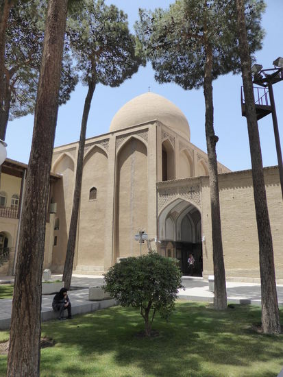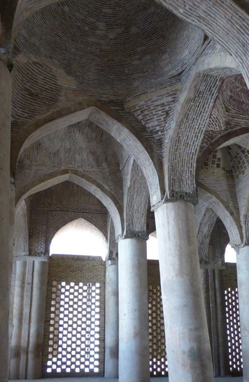 Im Durchgang an der Ostseite sieht man die urtümlichen Säulen der Gebetshalle aus der muzzafaridischen Zeit des 14 Jahrhunderts.
