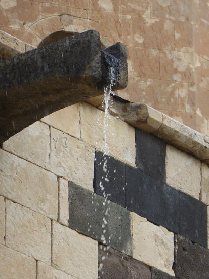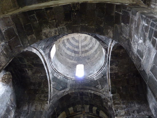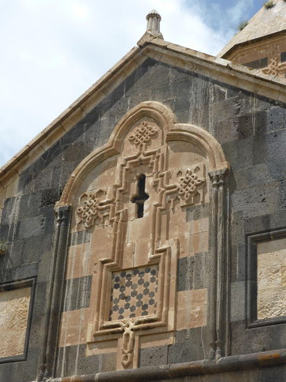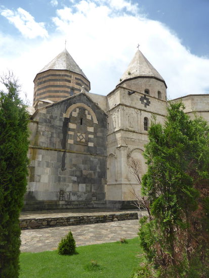 Wir verziehen uns wie schon in Ardebil ins Innere des Gebäudes, wo man deutlich zwischen früh (schwarzes Gestein) und spätem Kirchenbau (heller Sandstein) unterscheiden kann.