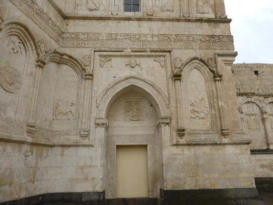 Gegen 12.30 Uhr erreichen wir dann die Thaddäus-Kirche - Qarah Kelisa = Schwarze Kirche - genannt. Schon von weitem erkennt man die beiden kegelförmigen Türme - Gottlob in der Sonne, die sich allerdings beim weiteren Annähern allmählich verzieht.