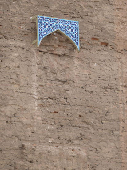 Nur der Frontbau mit einem fast 30m hohen Iwan ist übriggeblieben, nachdem mehrere Erdbeben die größten Teile des 200x250 m großen Komplexes zerstört haben. Obwohl ein großes Gerüst an der Front steht, ist wohl - Aussage Sami - seit Jahren nichts mehr an der Ruine gemacht worden.