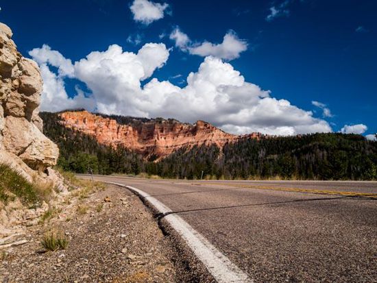 Am nächsten Tag, holten wir unser Mietauto ab. Wir erhielten ein günstiges Upgrade, und so hatten wir ein riesiges Amischiff als Auto für die nächsten Tage. Wir erhielten einen GMC Yukon XL, ein unglaublich grosser Offroader, der gefühlte 30 Liter Benzin auf 100 Km schluckte. Wir fuhren los in Richtung Bryce Canyon. Zuerst fuhren wir einige Zeit durch die Wüste von Nevada, bevor wir den Bundesstaat Arizona erreichten. Am Nachmittag machten wir einen Abstecher in den Zion National Park, welcher dann bereits im Bundesstaat Utah liegt. Wir fuhren einen schönen Scenic Drive, zu einem wunderbaren Aussichtspunkt. Danach fuhren wir über Cedar City und durch den Dixie National Forrest weiter Richtung Bryce Canyon. Gegen Abend erreichten wir schliesslich den Red Canyon, in der Nähe des Bryce Canyon. Bereits hier konnten wir erahnen was uns morgen im Bryce Canyon erwarten würde. Da es bereits kurz vor Sonnenuntergang war, und ein gewaltiges Gewitter aufzog, beschlossen wir in unsere Unterkunft in Panguitch weiter zu fahren. Unterwegs erwischte uns das Unwetter, es stürmte und plötzlich begann es zu Hageln, innert Sekunden war die komplette Fahrbahn weiss und mit Hagel bedeckt. Schliesslich erreichten wir Panguitch, wo wir unser einfaches aber schönes und geräumiges Motel bezogen.