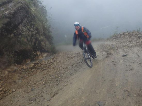 Als wir dann die eigentliche Todesstasse erreichten, wurde das Wetter so richtig schlecht. Es regnete und die Sicht im Nebel betrug keine 50 Meter, was die Abfahrt zusätzlich erschwerte. Nach 15 Minuten waren wir bis auf die Haut nass und die Schuhe waren komplett durchnässt. Ausserdem waren wir von oben bis unten mit Dreck und Schlamm zugedeckt. Es war mir nun doch etwas mulmig zu mute. Die Strasse war wirklich in einem schlechten bis desolaten Zustand, immer wieder war die Strasse abgebrochen und der Abgrund der bis zu 500 Meter tief war begann gleich am Strassenrand. Aber dieses Wetter machte die Abfahrt noch spezieller und es war wirklich ein einzigartiges Erlebnis. Der Nebel und der Regen welcher im Tal hing, ergab eine richtig gespenstische Stimmung. So fuhren wir die Schotterpiste herunter. Immer wieder machten wir eine kurze Pause um unsern Händen eine kurze Erholungspause zu gönnen. Nach ca. 4,5 Stunden kamen wir in Yolosa an. Wir erhielten Mittagessen und entspannten bei einem kühlen Bier.
