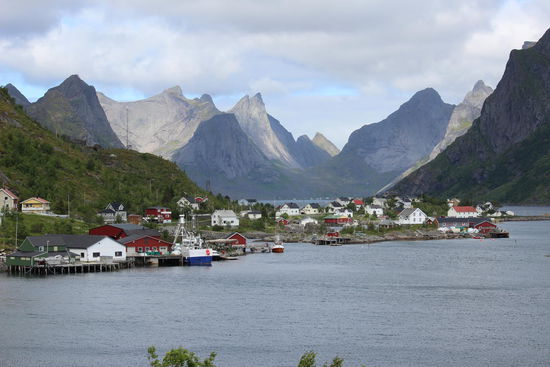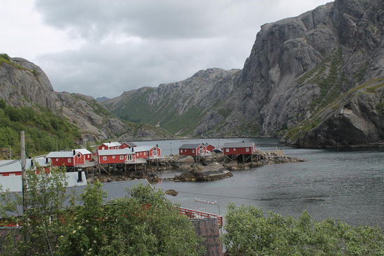 Die roten Fischerhäuser, auf Holzstelzen am Wasser gebaut, sind ganz charakteristisch für die Lofoten. So schön aber wie hier in A und Reine, habe ich sie später nicht mehr gesehen. Das Landschaftsbild änderte sich ohnehin sehr stark, als wir Richtung Norden und später dann in die Vesteralen fuhren.