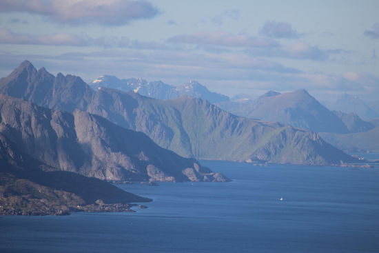 Heute besuchten wir Svolvaer, fuhren dann weiter nach Hopen und bestiegen den Glomtinden.
