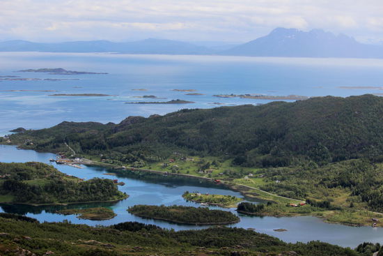 Offiziell beginnt der Weg zum Digermulkollen im Zentrum von Digermulen. Hier führt der markierte Pfad gegenüber dem alten Laden hoch auf den Berg. Wir haben allerdings einen anderen Einstieg nach dem östlichen Ende des Dorfes gegenüber eines Schotterparkplatzes gewählt. Von oben hatte man eine tolle Aussicht (Kaiserblick) auf den Raftsund, Store Molla, Årstein und zum Festland. Die Tour nach oben war leicht und dauerte ca. 1 Stunde.
