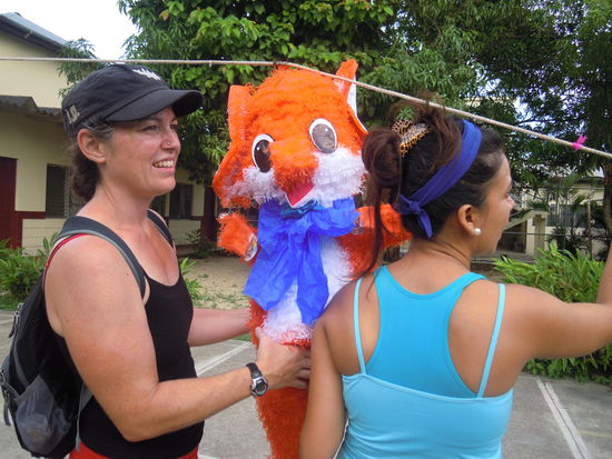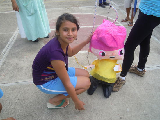 Am letzten Tag habe ich mit der Eva noch 2 Piñatas fuer die Maedls gekauft und dann ging es ab ins Waisenhaus. Es war auch noch genau der Tag der Kinder (Dia de los niños). Da bekommen die Kinder kleine Geschenke und Suessigkeiten. Hat dann mit den Piñatas auch super gepasst, da das Waisenhaus fuer solche Scherze natuerlich nicht wirklich Geld hat. Die Maedls waren ganz heiss auf die Piñatas und haben dann mal ordentlich zugeschlagen. Es sind dann auch noch die anderen Studenten aus meiner Schule (in der letzten war es ja richtig voll da, wir waren da auf einmal 9 Schueler) dazugekommen. War dann auch ein tolles Fest. Ich habe dann noch mal die Bilder verteilt, die ich ausgedruckt hatte und mich schliesslich noch von den Maedls verabschiedet.