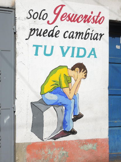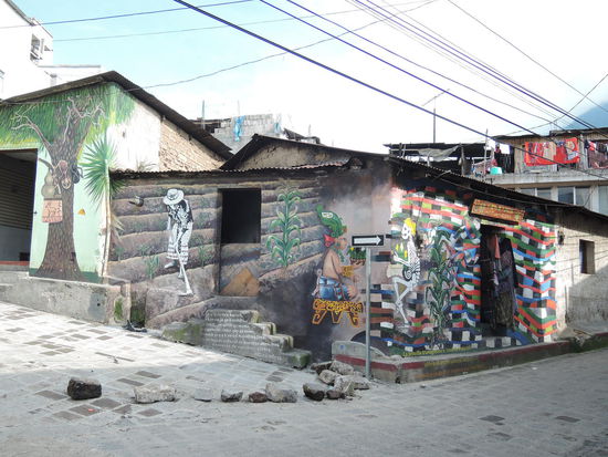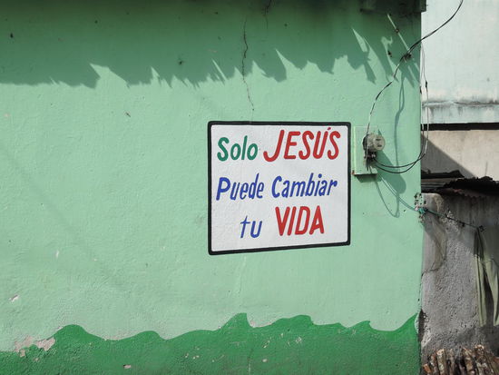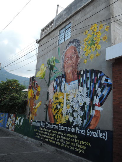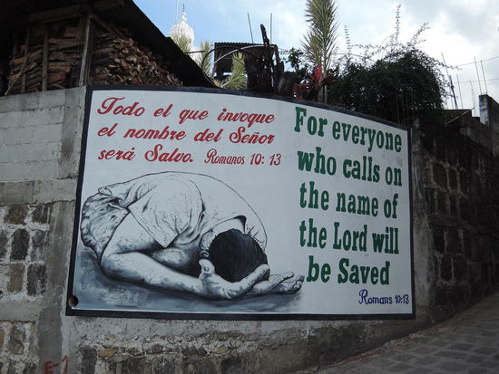 Der zweite Gluecksgriff ist dann meine Lehrerin, die Magdalena, die wohl noch sehr die alten Mayariten praktiziert und mir alles darueber erzaehlen kann. Ein grosser Teil der Bevoelkerung ist hier katholisch, hat aber auch kein Problem damit, die alten Traditionen der Maya zu praktizieren. In den 80er Jahren wurden im sogenannten Buergerkrieg ca. 200.000 Menschen hingemetzelt, ca. 80% davon Menschen aus der indigenen Bevoelkerung. Da sich viele der katholischen Pfarrer auf die Seite der armen Bevoelkerung stellten, wurden die auch gleich mitumgebracht. Dies hatte zur Folge, dass sich hier viele evangelikale Gruppen extrem vermehrten. Die Evangelikalen nehmen die Bibel beim Wort und haben sehr strenge Gebote. Alkohol, Tabak und nichtchristliche Musik sind z.B. verboten. Die Evangelikalen reagieren sehr schnell auf Unstimmigkeiten unter den Glaeubigen, ist man sich z.B. nicht einig, spaltet sich ein Teil der Gruppe ab und gruendet einfach eine neue Gruppe. Das bedeutet, dass es hier unzaehlige Gruppen von Evangelikalen gibt. Jede 2. Hausmauer hat auch einen religioesen Spruch. (und auch fast jedes Tuktuk)
