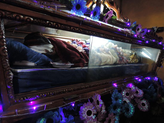 Am Freitag sind wir dann noch mit einigen Schuelern und Lehrerinnen mit dem Boot nach Santiago Atitlan gefahren um dort den Markt und den Maximon (einen Heiligen der Maya) zu besuchen. Maximon ist eine Holzfigur mit allerlei Seidenkrawatten, der man dann Geschenke mitbringt (z.B. Schnaps, Zigaretten und Geld) und dann kann man sich was wuenschen.