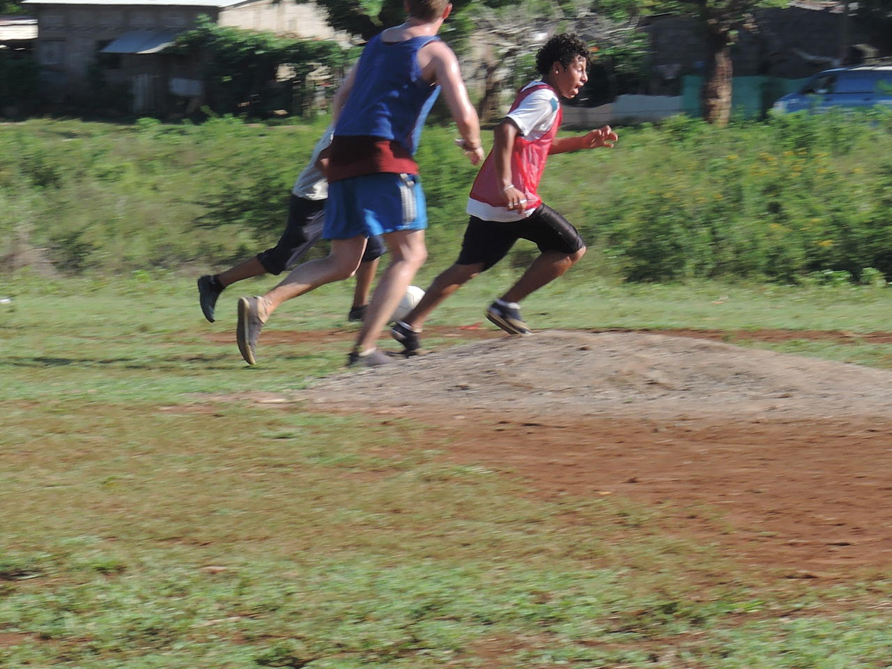 In Granada ist der Unterschied zwischen sehr arm und sehr reich viel deutlicher zu sehen als in Leon. Ich habe nach meiner Ankunft gleich im Hostel Oasis eingecheckt (7 Euro inkl. Fruehstueck). Ich war noch keine Stunde da, da habe ich ein Maedl aus den US kennengelernt, die in Granada ein volunteering bei der Organisation ampedforeducation.org macht und mich gefragt hat, ob ich den Lust haette mit den Kids aus den Vororten von Granada Fussball zu spielen. Ich natuerlich sofort mit. In den Vororten von Granada sieht man dann den anderen Teil Nicaraguas, die Leute hier leben in Wellblechhuetten, haben kein fliessend Wasser und auch keinen Strom. Den Kindern fehlt es an Schulbildung, gesunder Ernaehrung, sauberem Wasser und, und, und. Wir sind da auf ein Feld und haben etwas gewartet und dann kamen auch nacheinander die ganzen Kids. Das war schon spassig mit den Kids! Ich habe die meiste Zeit mit der kleinen Lupe gespielt, da mir die Jungs etwas zu viel Kampfgeist zeigten. Die Lupe ist 5 Jahre alt und hat 4 aeltere Brueder.