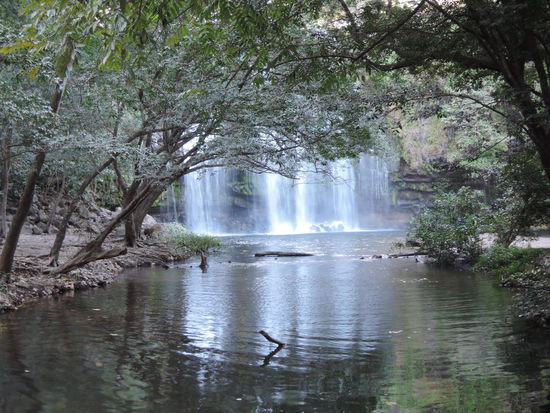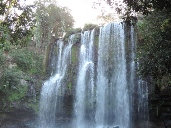 Nach meiner Ankunft in Liberia habe ich mich auf die Suche nach einem Hotel gemacht und das Hotel Pura Vida (Uebernachtung 10 Euro) gefunden. Pura Vida sagen die Ticos auch sehr oft und meinen damit, alles in Ordnung, alles super. Im Hostel angekommen, bin ich gleich der Claudia aus Kolumbien ueber den Weg gelaufen und die meinte, ob ich mit ihr und dem Josh zu einem Wasserfall Llanos de Cortes will. Ich, klar und wir sind los. Erst mit dem Bus ein Stueck und dann noch ein Stueck zu Fuss. Ich dachte erst, der Josh ist auch aus Kolumbien, da er so einen merkwuerdigen Akzent hat. Der hat uns dann aber erzaehlt, er waere aus den Staaten und ist vor einigen Jahren mit seinem Motorrad ueber eine Bruecke geflogen und lag danach 6 Monate im Koma. Da war die Sprache natuerlich dahin. Es fehlen ihm auch heute noch manchmal einige Woerter, er ist aber ein ganz netter Kerl und hat uns mit einigen Geschichten unterhalten. Auf dem Rueckweg hat uns dann eine costaricanische Familie mitgenommen und die haben nicht schlecht gestaunt, als sie uns fragten, woher wir den waeren. Gleich drei Laender am Start. Am Abend haben wir noch schoen zusammen gekocht und ein Flaschl Wein aufgemacht. Der Josh wollte so eine Packung Wein kaufen, aber ich gleich "Nix da!", es wird ordentlicher Wein getrunken. Die haben nicht schlecht gestaunt, dass ich immer einen Korkenzieher im Gepaeck habe. Ja, ohne mein Schweizer Messer fahre ich nirgends hin.
