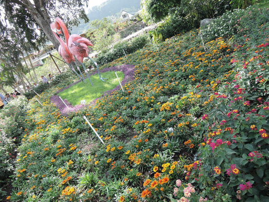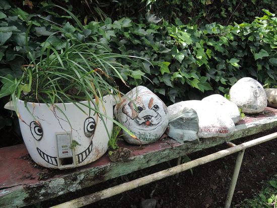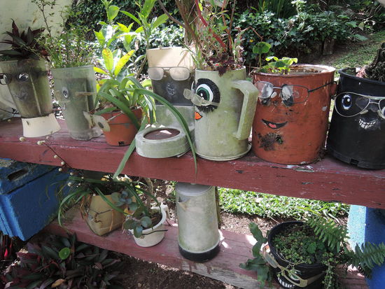 Von David ging es dann noch mit dem Chickenbus weiter nach Boquete. Da war dieses Wochenende eine Kaffee- und Blumenmesse. Wir haben uns die Messe ein bisschen angeschaut, da gab es auch eine richtig fette Partymeile. Am naechsten Tag sind wir dann noch zu einem Garten gewandert, der von einer Einheimischen aus Recyclinggegenstaenden, Blumen und Pflanzen hergerichtet wurde.