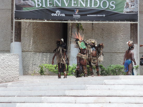 Danach gings weiter zu einem mexikanischen Restaurant, wo ein Buffet mit allerlei mexikanischen Leckereien aufgebaut war. Unterhalten wurden wir waehrend des Essens von einigen mexikanischen Volkstaenzern. Nach einer kurzen Fahrt haben wir dann Chichen Itza erreicht. Da wurden wir unseren jeweiligen Guides zugeteilt, die uns durch die Anlage gefuehrt haben und uns die wichtigsten Dinge erklaert haben. Ich muss mich jetzt noch mal in diese Mayakultur einlesen, da das wirklich ein sehr interessantes Voelkchen zu sein scheint. Chichen Itza ist eine der bedeutensten Mayastaetten auf der Yucatanhalbinsel. Die UNESCO erklärte Chichén Itzá 1988 zum Weltkulturerbe. 2007 wurde Chichén Itzá im Rahmen einer Privatinitiative nach Angaben der Veranstalter von weltweit 70 Millionen Menschen zu einem der "neuen sieben Weltwunder" gewählt.