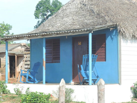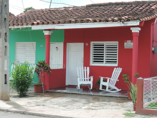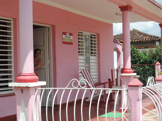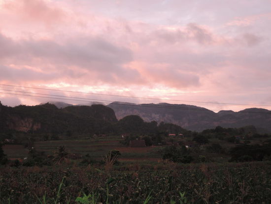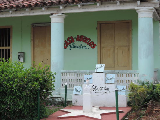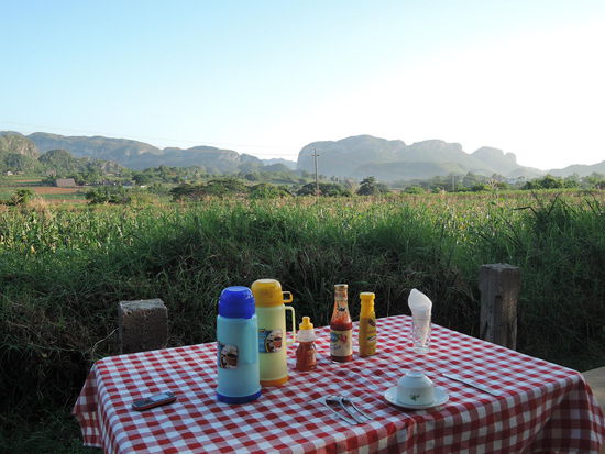 Ich hatte mir eine Nacht in der Casa El Porry reserviert. Der Porry hat mich vom Busbahnhof abgeholt und mir sein trautes Heim gezeigt. Ein nettes Haeusl mit 3 Zimmern und einer Dachterasse mit Blick ueber die wundervolle Landschaft rund um den kleinen, beschaulichen Ort Vinales. Der Porry hatte nur Platz fuer eine Nacht, aber hat mich gleich bei seinen Nachbarn untergebracht - Deny und Mercedes (die vermieten erst seit ein paar Monaten) - und das fand ich dann noch besser, die hatten nur 1 Zimmer und ich hatte die Terasse ganz fuer mich alleine. Das Haus liegt direkt an den Feldern und hat so einen perfekten Blick auf die Kalkfelsen und die Landschaft. Ausserdem haben sich die beiden wirklich hervorragend um mich gekuemmert und die Mercedes hat mich auch essenstechnisch versort. In den meisten Casas gibt es ein sehr reichhaltiges Fruehstueck fuer 4-5 CUC und auch mit dem Abendessen ca. 8-10 CUC faehrt man meistens nicht schlecht. Das Essen auf Kuba loesst nicht wirklich Begeisterungsstuerme aus, aber in den Casas ist es ganz ok.